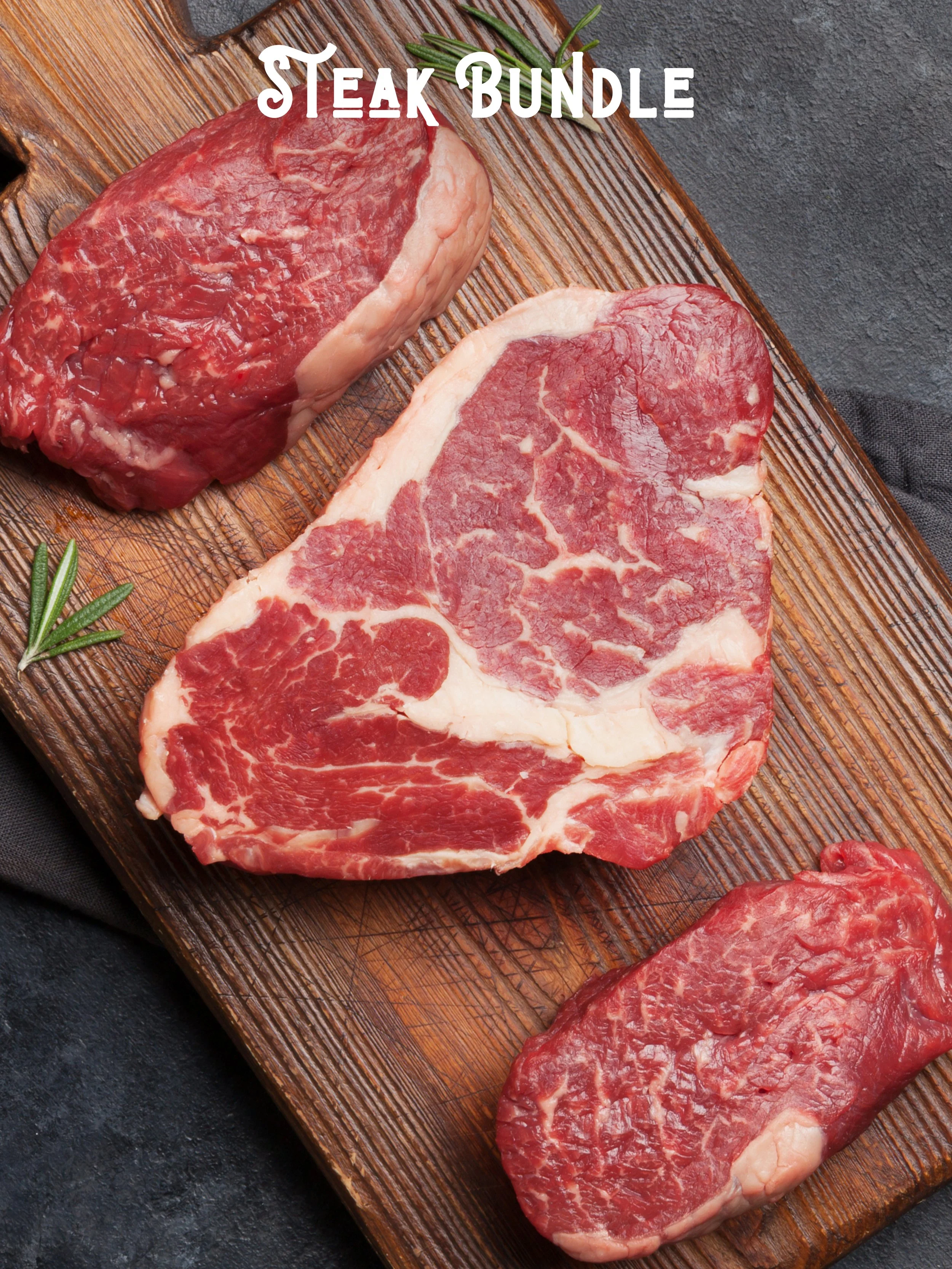 This bundle brings together three of the most iconic steakhouse cuts—rich, marbled Ribeyes; bold, beefy New York Strips; and tender, buttery Filet Mignon. Whether you're grilling, pan‑searing, or celebrating something special, this collection delivers unforgettable flavor and quality in every bite.